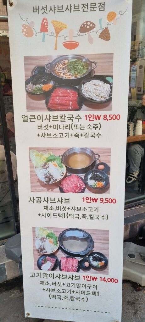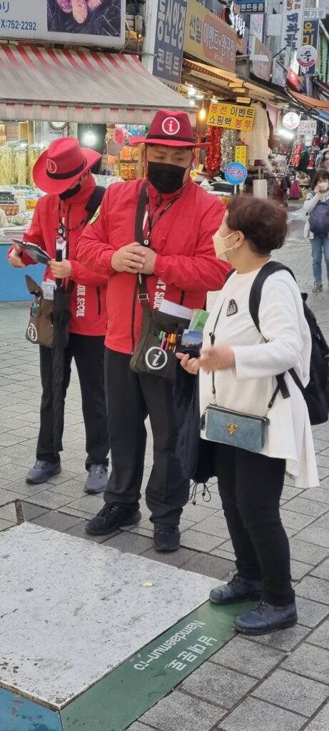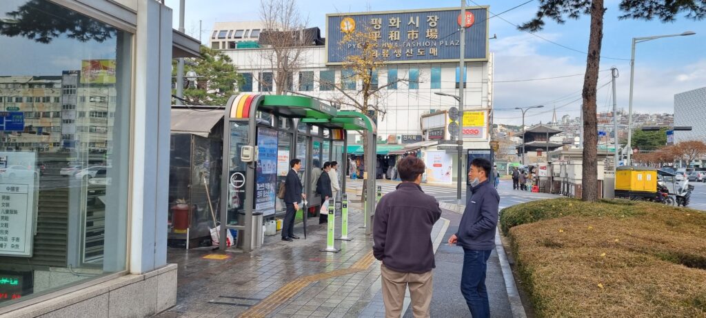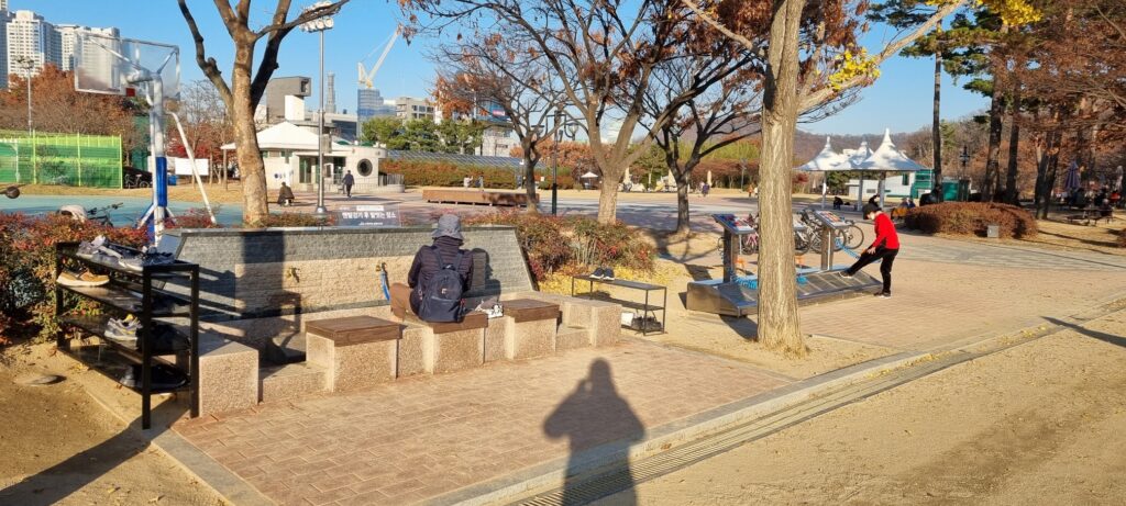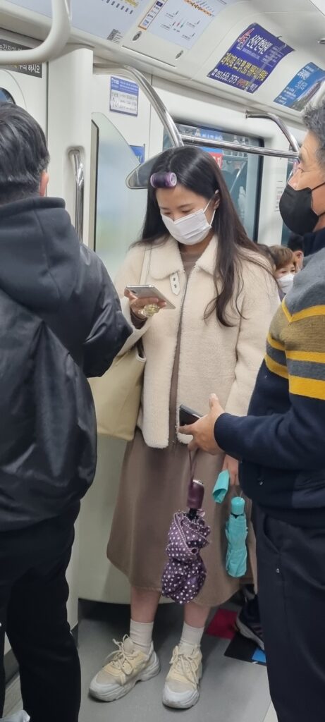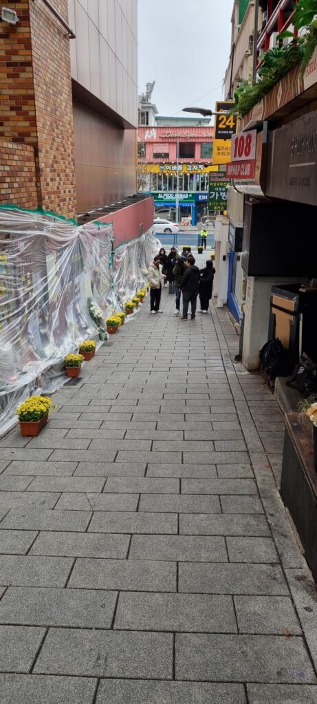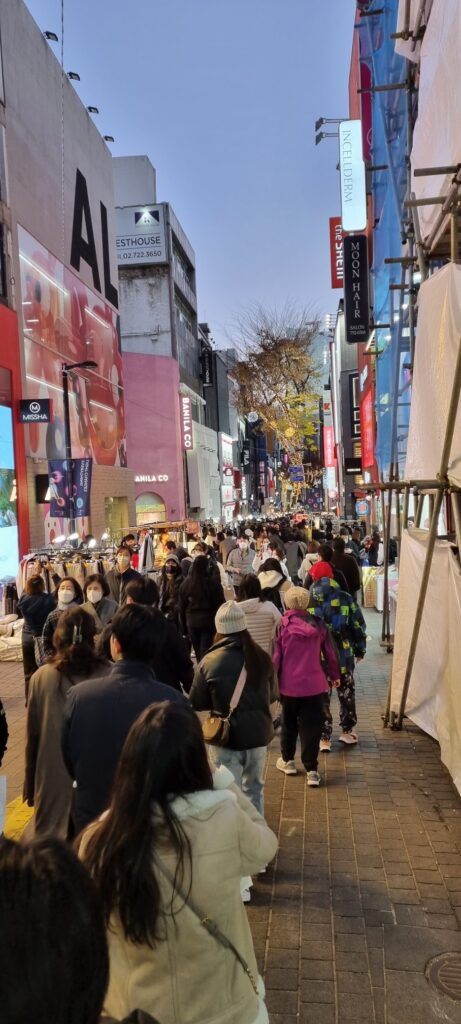 Das Essen besteht vermehrt aus Fleisch. Es gibt unheimlich viele Restaurants und Kaffeehäuser und viele lassen sich das Essen von einem Zustellservice (wie schon erwähnt mit Zweirädern) liefern. Koreaner/innen sind oft sehr laut und nicht so höflich wie die Japaner. Sie sind verheiratet mit ihrem Handy und schauen oft nicht einmal wo sie gehen. Die Schönheit der Leute hält sich auch in Grenzen. Aufgefallen ist mir auch, dass es oft nach Kanal stinkt und das schon in der nicht warmen Zeit. Die Ampelphasen sind bei Rot für Fußgänger extrem lange. Natürlich gefühlsmäßig noch einmal länger, wenn es minus Grade hat. Blöd auch, dass die Leute wirklich nur bei Grün die Überquerung starten.